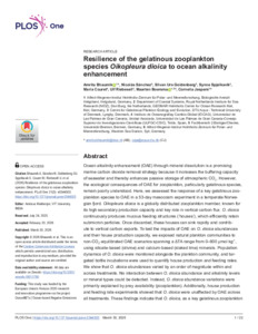 Resilience of the gelatinous zooplankton species Oikopleura dioica to ocean alkalinity enhancement.