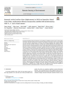 Seasonal vertical surface thaw displacement in 2018 on Samoylov Island (Lena Delta, northeastern Siberia) measured by satellite SAR interferometry with X-, C- and L-band sensors