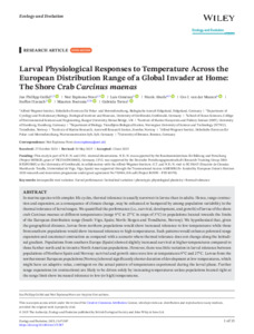 Larval Physiological Responses to Temperature Across the European Distribution Range of a Global Invader at Home: The Shore Crab Carcinus maenas