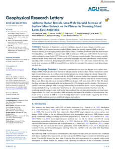 Airborne Radar Reveals Area‐Wide Decadal Increase of Surface Mass Balance on the Plateau in Dronning Maud Land, East Antarctica